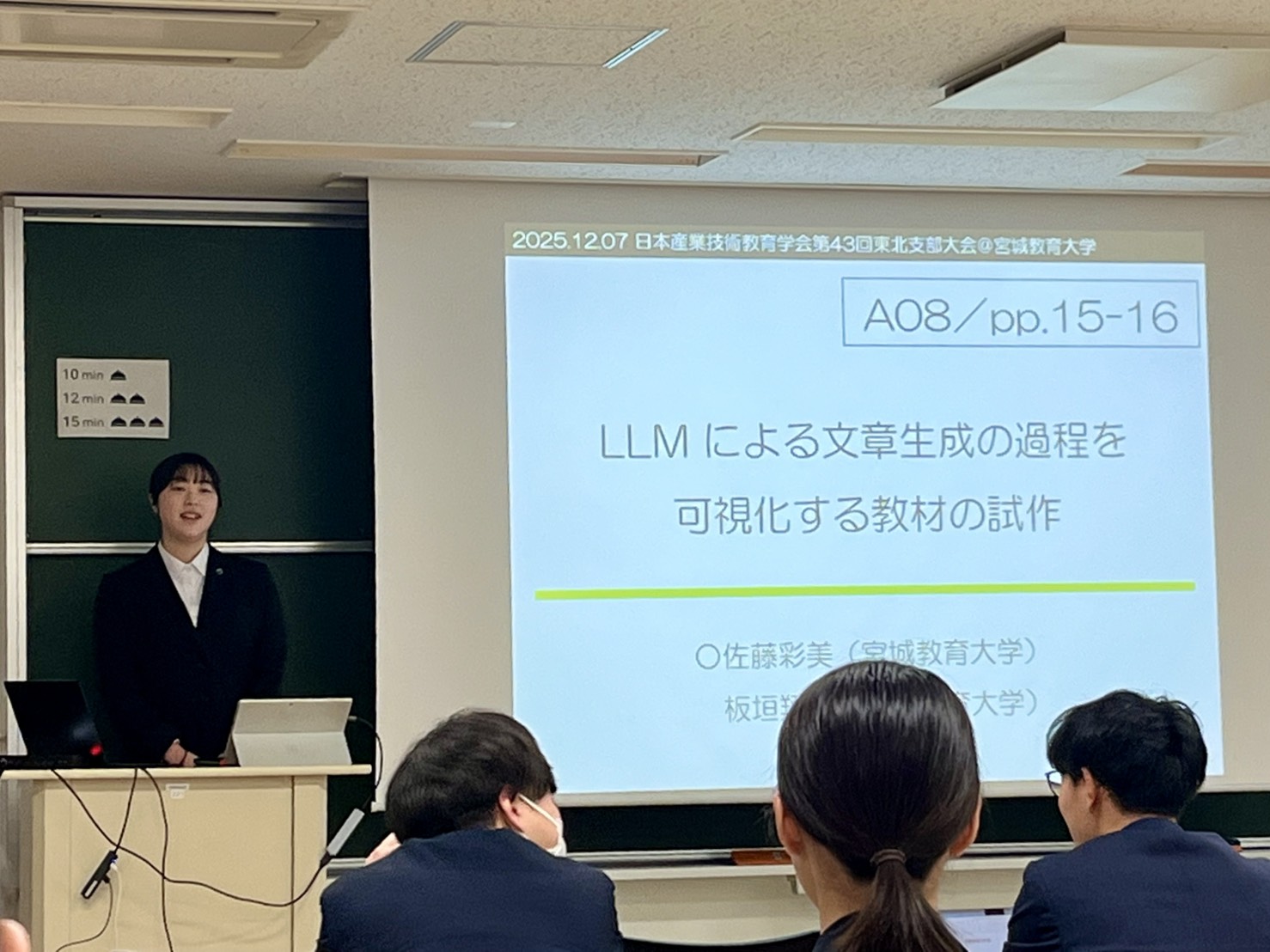 さらに、今回の東北支部大会は本学での開催であったため、会場準備や受付などの学会運営にも携わりました。運営に関わる中で、学会開催の裏側には多くの人の支えと努力があることを実感するとともに、学会に参加し発表できることのありがたさを改めて感じました。